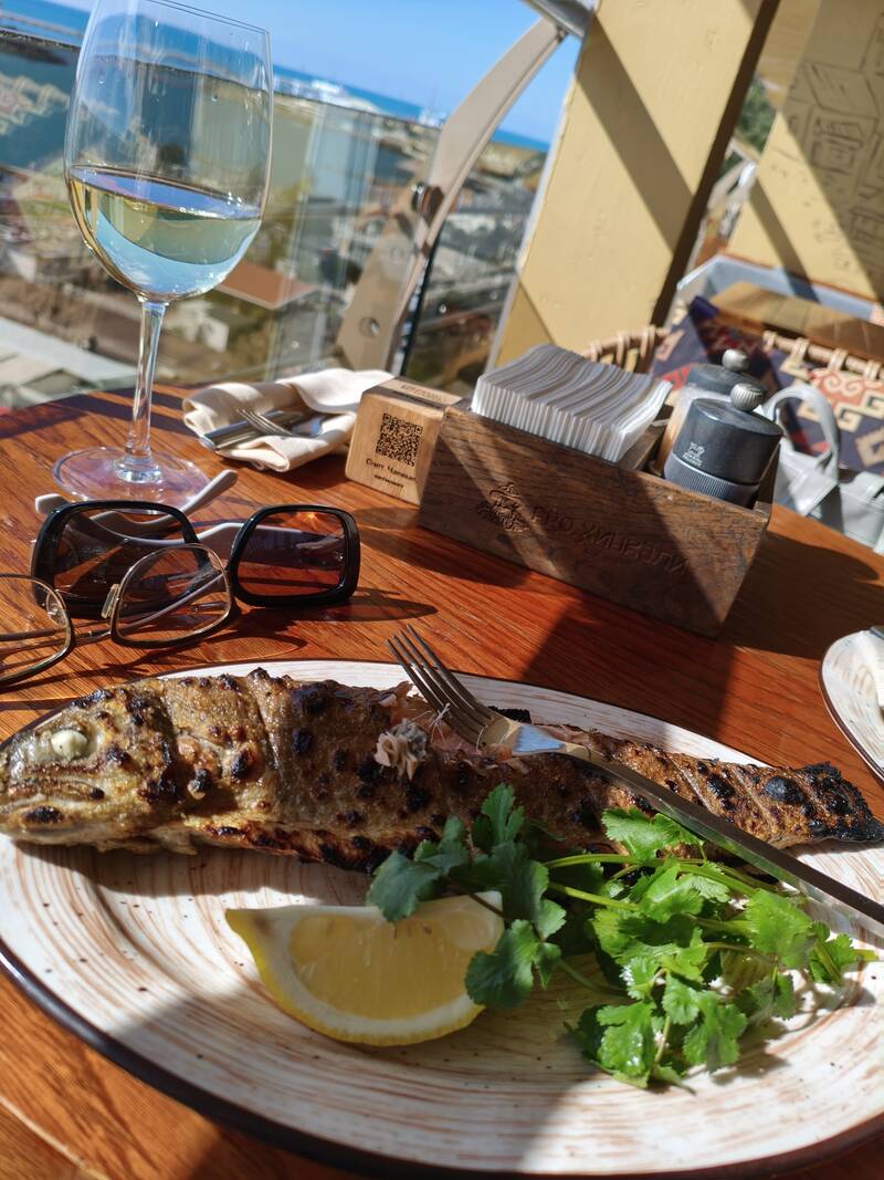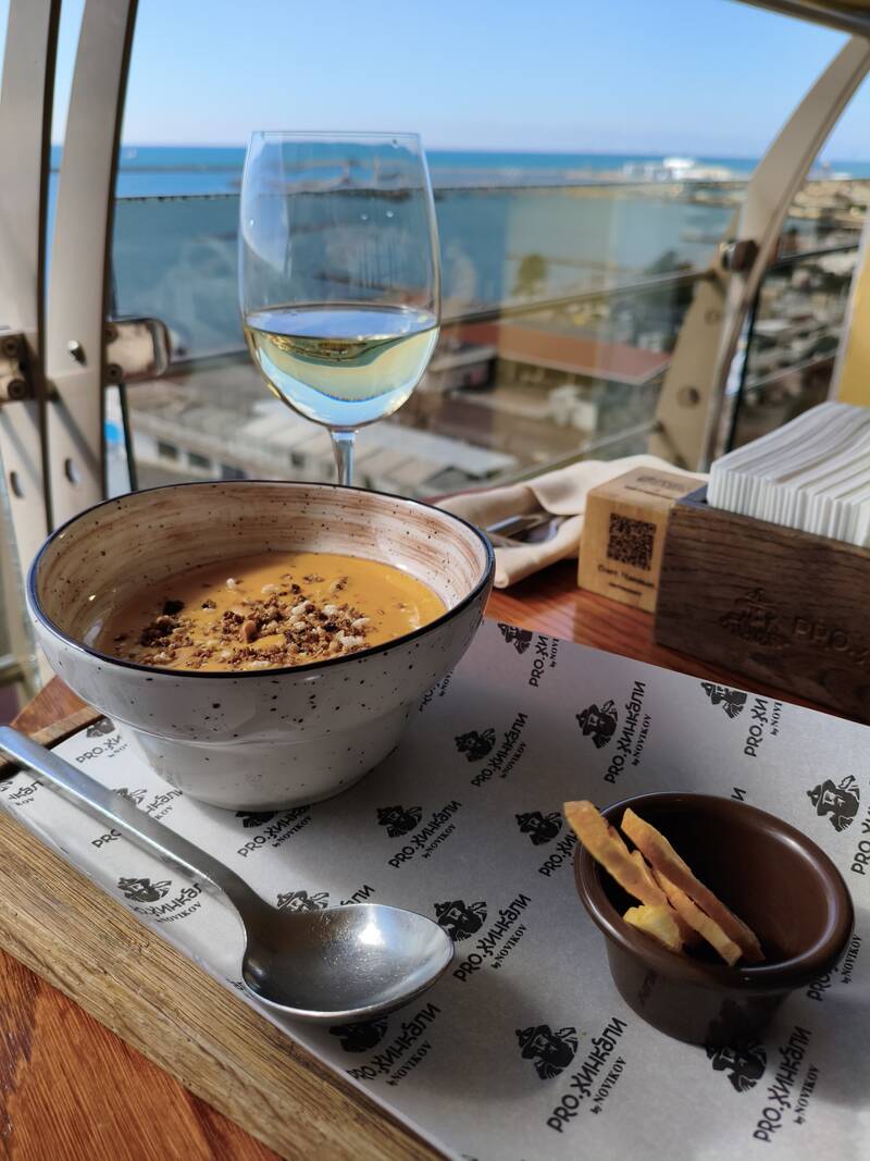 Мой отчет в основном в фото, но я думаю, что и этим доставлю вам удовольствие. На 8 марта гуляла по улицам Сочи, купила нарциссы 11 штук за 200 рублей и решила зайти в ресторан про хинкали возле Александрийского маяка. Пришлось посидеть на веранде, подождать, очередь была немаленькая. Меня пригласили на балкон, дали плед и я слушала грузинские мелодии, смотрела на море! Из-за перенесённой операции мой выбор блюд был без хинкали. Крем-суп из запечёной тыквы, форель на мангале и сухое Цинандали. Особенно понравился крем-суп. Да всё было вкусно!